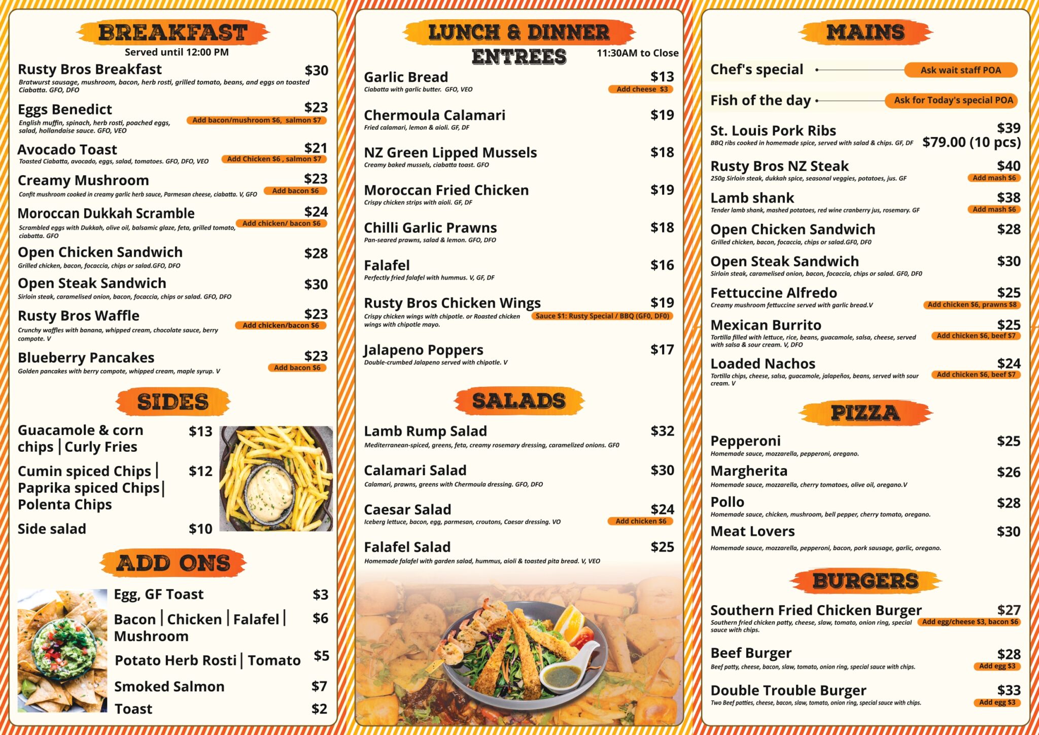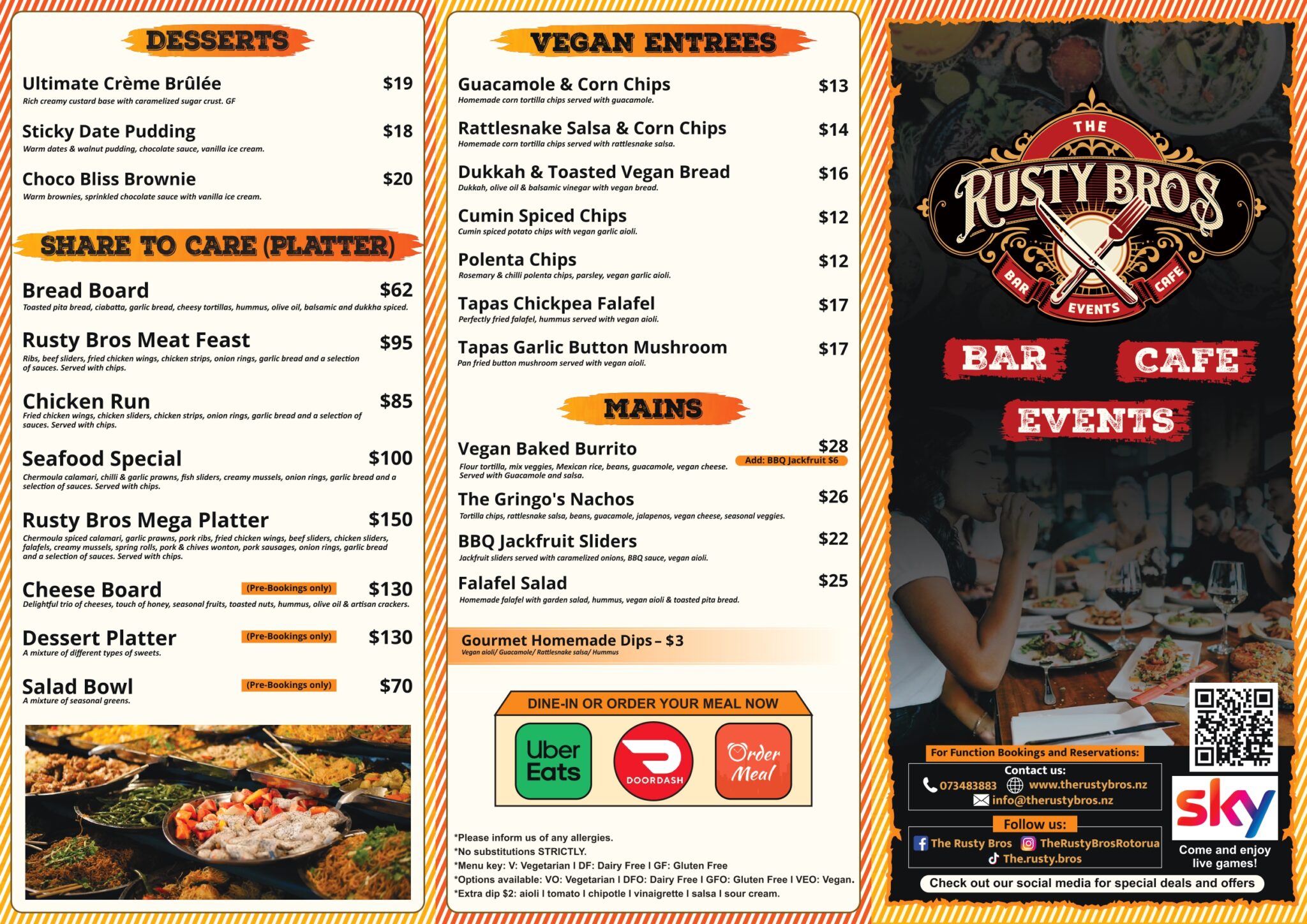 - At The Rusty Bros, we believe in the power of hospitality to bring people together. Whether you're joining us for a leisurely brunch or a festive evening out, we invite you to immerse yourself in the warmth and hospitality that define our establishment. Come experience the magic of The Rusty Bros and see why we're the talk of the town in Rotorua.